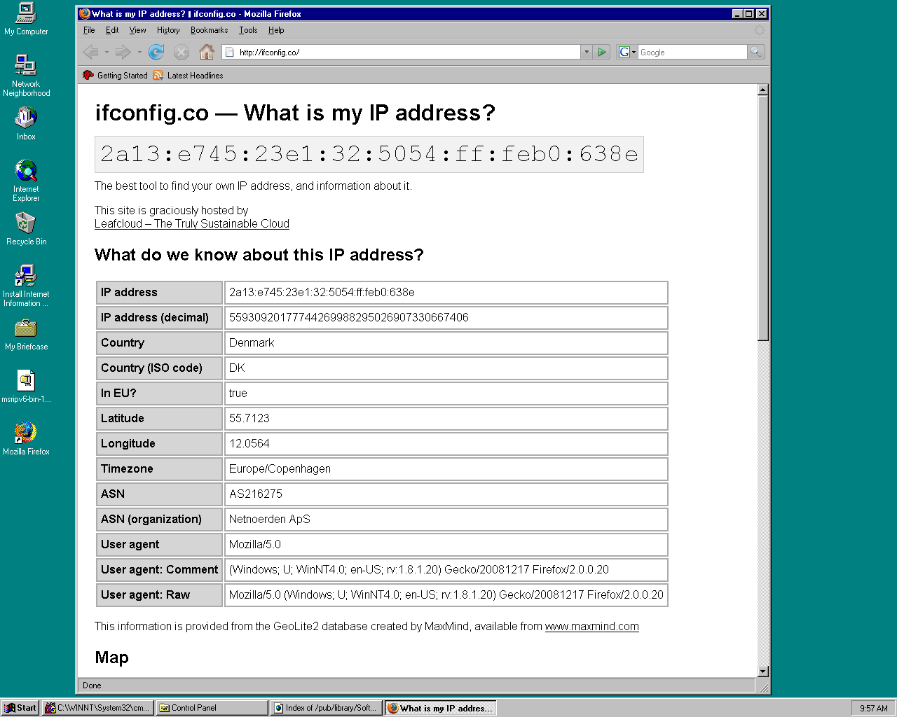 Microsoft Research released an IPv6 stack for Windows NT 4.0. I couldn’t find when they published the first version of it, but the earliest page capture on the Wayback Machine is from June 2001 marking the release of version 1.4.